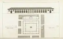 Dans le cadre des projets d'embellissement de Paris entrepris par Napoléon Ier, la construction d'un nouveau marché remplaçant l'ancien marché et la foire, fut décidée par décret en 1811. Le nouveau bâtiment fut érigé entre 1813 et 1817 sur les plans conçus par Jean-Baptiste Blondel (1764-1825), un des architectes favoris de l'Empereur[1]. Celui-ci s'inspira des places publiques italiennes, et proposa la réalisation de 4 galeries entourant un rectangle de 6 900 m2. Ces dernières s'ouvraient par 112 arcades en pierre, aussi bien sur l'extérieur que sur la cour intérieure ornée d'une fontaine avec une statue figurant la Paix. En 1860, à la demande des commerçants, Napoléon III fait couvrir la cour intérieure qui, au fil des ans, fut complétée par l'édification d'une « Maison du Livre » en 1898, puis d'une « Maison des Examens » en 1950[3].