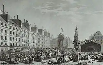 La Constitution du 14 septembre 1791 qui institue la Monarchie constitutionnelle y est proclamée le 18 septembre avec plantation d’un arbre de la liberté.