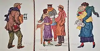 Pendant la Première Guerre mondiale, elle réalise une série de douze cartes postales.