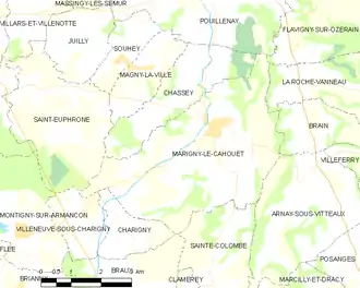 - « Orthodromie entre Marigny-le-Cahouët et Semur-en-Auxois », sur fr.distance.to (consulté le ).