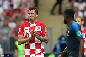 |   Mandžukić avec la Croatie pendant la finale de la Coupe du monde 2018. | ||