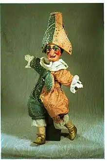 En Asie aussi, les marionnettes sont très anciennes puisqu'on en a trouvé dans des sites de la civilisation de la vallée de l'Indus[3]. Les spectacles à Sutradhra (homme tireur de fils) mettent en scène des personnages de la religion, mais aussi des personnages humains, dont Vidouchaka[4], origine possible de tous les karagöz et polichinelles. Cette tradition ancienne en Inde[5] s'est élargie à Ceylan, puis au Siam, à la Birmanie, à l'Indonésie (ancêtre des wayang), en Perse (Pendj, Ketchek Pehlivan, Cheïtan, Hassan Ilodja, Shah Sélim…), au Turkestan…