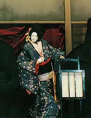 Les spectacles de marionnettes remontent au moins à la période Heian (fin VIIIe - fin XIIe siècle) au Japon. Des montreurs de marionnettes itinérants sont signalés jusqu'au XVIe siècle[30], de genre Jōruri. Le bunraku est un type de théâtre japonais qui s'est développé à partir du XVIIe siècle. Il met en scène des marionnettes de grande taille de 120 cm à 150 cm, manipulées à vue par plusieurs manipulateurs[31], tandis qu'un narrateur déroule le récit au son du shamisen. Le répertoire, qui s'adresse essentiellement à un public adulte et met en scène des guerriers samouraïs, des aristocrates ou des bourgeois, est essentiellement composé de drames « cornéliens » au dénouement souvent tragique[29].