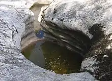 Une grande marmite à la paroi concave et partiellement remplie d'eau peut constituer un piège mortel pour les adeptes de la descente de rivière ou de canyon.