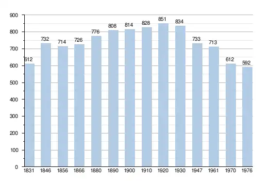 - Sources:INS, Rem:1831 jusqu'en 1970=recensements, 1976= nombre d'habitants au 31 décembre