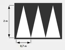 Pour les coussins, trois triangles doivent être réalisés avec une base de 0,5 m avec un triangle s'étendant sur toute la longueur de la rampe[2].
