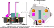 Le système doit effectuer deux sauts, l’un pour atteindre la zone à étudier sur Planum Australe, l’autre pour se poser sur le site final d’étude des geysers. Il peut se déplacer au moyen de moteurs monopropulseurs pulsés à hydrazine, laquelle est maintenue sous forme liquide à −75 °C grâce au système thermique[2], conçus pour permettre un redémarrage. Les ingénieurs ont pu estimer les quantités de propergol nécessaires pour ces sauts grâce au programme Mission Analysis and Simulation Tool in Fortran (MASTIF), permettant des modélisations de sauts.
