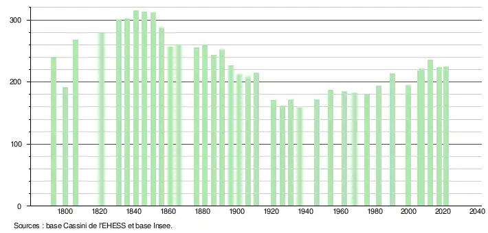- Fiches Insee - Populations légales de la commune pour les années 2006, 2007, 2008, 2009, 2010, 2011, 2012, 2013, 2014, 2015, 2016, 2017, 2018, 2019, 2020 et 2021.
