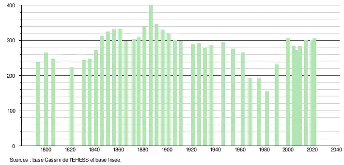 - Fiches Insee - Populations légales de la commune pour les années 2006, 2007, 2008, 2009, 2010, 2011, 2012, 2013, 2014, 2015, 2016, 2017, 2018, 2019, 2020 et 2021.
