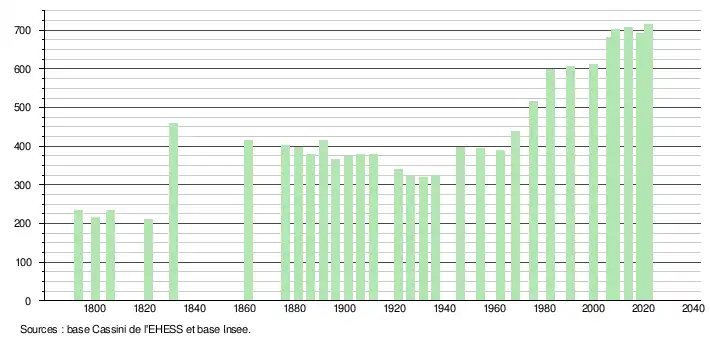 (Sources : Ldh/EHESS/Cassini jusqu'en 1999[21] puis Insee à partir de 2006[22].)