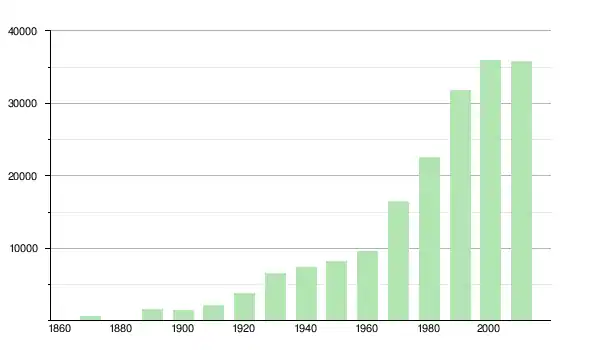 | 1930 | 6 569 | ▲ +70,27 % | |