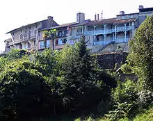 Le pont fut entièrement rénové entre 1928 et novembre 1930. Le tablier de bois (plancher et garde-fous) fut remplacé par des éléments métalliques et élargi (d'un mètre[49]) par creusement de la maçonnerie supérieure des piles. Les masses d'ancrage pour les câbles furent également renforcées. La circulation fut rouverte le 29 novembre 1930[50]. Le pont connut à nouveau des travaux d'entretien importants durant les années 1970 : réparation du tablier en 1974 et surtout remplacement des câbles (partielle en 1973 ; totale entre mai et août 1976). En 1987, ce fut au tour des piles d'être renforcées avec du béton[49]. Les derniers travaux d'importance datent de 1997[51].Il existe également un pont sur le Pichagouille (RD 289) et deux ponts sur le canal latéral à la Garonne en direction de Caumont-sur-Garonne[6]. Le pont sur le Pichagouille est un pont de fond de vallée qui derrière un aspect général simple masque une structure double plus complexe. La partie sud du pont (voie de gauche en se dirigeant vers Sainte-Marthe) est la partie la plus ancienne du pont. Il s'agit d'un pont en maçonnerie à une arche avec voute en berceau. La partie nord du pont (voie de droite en se dirigeant vers Sainte-Marthe) n'est qu'un élargissement du pont par un tablier horizontale en béton. En ce qui concerne les ponts sur le canal, le premier, immédiatement à la sortie du bourg, se situe au niveau de l'écluse : il s'agit d'un pont en maçonnerie et pierre de taille ; le second se situe au lieu-dit « Larriveau » (environ 1,1 km en aval) : il s'agit d'un pont en béton armé. Pour ces deux ouvrages d'art, la charge maximale est limitée à seize tonnes et la circulation y est alternée à cause de leur étroitesse[38].