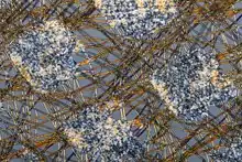 - Deux couches dites "SpunBond" (procédé par extrusion à froid) : une couche interne blanche et une couche externe pouvant être colorée (bleue, verte, violette, etc.),
