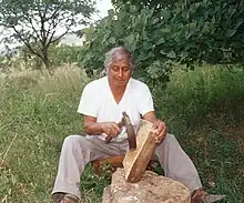 D'autres danseurs avec des personnages plus âgés comprennent la version des Mixtèques à Cuilapan de Guerrero (en), Oaxaca. Celle-ci est dansée en juillet et en août, la danseuse principale se distinguant par un masque au nez exceptionnellement long[58]. Dans la danse pascola du nord-ouest du Mexique, l'un des personnages est appelé « le vieil homme du festival ». Toutefois, le masque de ce personnage peut avoir un visage humain ou des traits d'animaux tels que ceux du singe ou du bouc[59].