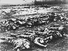 Ils sont emmenés dans un champ voisin, disposés en ligne et collectivement abattus au crépuscule[3]. Parmi les survivants de la première salve, cinq rampent à l'écart et sont en mesure par la suite de livrer un témoignage détaillé des événements[4].