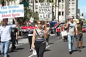 Cependant les populations des pays occidentaux ne sont pas favorables à une entrée en guerre : aux États-Unis, en France, en Allemagne, au Royaume-Uni et en Italie, divers sondages montrent une opinion publique nettement défavorable à une intervention militaire en Syrie, seul Israël fait exception[127],[128],[129],[130].