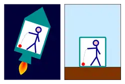L'équivalence entre masse inerte et masse grave est parfois appelé le « principe d'équivalence galiléen », ou encore la version faible du principe d'équivalence. La conséquence la plus directe de ce principe se rencontre en effet dans la loi de la chute libre, dont l'étude par Galilée l'avait conduit à dégager la notion d'inertie, étude à l'occasion de laquelle il avait pu constater que la loi de la chute était indépendante de la masse des corps et de leur nature. En termes modernes, si une masse pesante est placée dans un champ gravitationnel , elle subit une force , et y répond par une accélération , impliquant cette fois-ci sa masse inerte . Si l'expérience montre que la loi du mouvement est la même pour tous les corps, indépendamment de leur nature, c'est donc que l'accélération est la même pour tous, et donc :