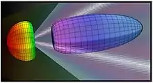 La masse d'inertie relativiste est alors définie par rapport à la masse au repos et la vitesse , par :