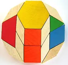 Les attrimaths (ou Pattern Blocs en anglais) sont des formes en bois de tailles et de couleurs variées :