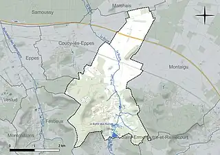 Les communes limitrophes sont Coucy-lès-Eppes, Courtrizy-et-Fussigny, Eppes, Festieux, Marchais, Montaigu et Saint-Erme-Outre-et-Ramecourt.