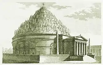 Gravure du Piranèse montrant l'urne d'Agrippine et le mausolée d'Auguste.