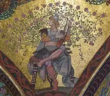 La mosaïque est un assemblage d'éléments multicolores en émail, en verre ou encore en céramique, pour former des motifs ou des figures incrustés dans un ciment. Ces éléments sont appelés des tesselles. Elles ont généralement une forme de cube. Les tesselles dorées sont obtenus en recouvrant une feuille d'or avec du verre.