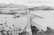 - le lac Karihani, sur la commune de Tsingoni, seule étendue naturelle d'eau douce permanente[44]. Il s'étend sur une surface de 5 ha en saison des pluies, qui se réduit à 0,25 ha en fin de saison sèche[43].
