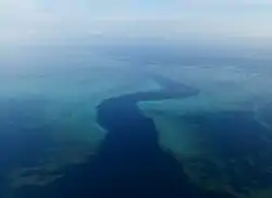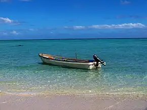 Ce récif corallien de 160 km de long entoure un lagon de 1 100 km2, un des plus grands et des plus profonds au monde[40]. On trouve, sur une partie de la barrière de corail, une double barrière qu'il est rare d'observer sur la planète[41]. Il protège des courants marins et de la houle océanique la quasi-totalité de Mayotte, à l'exception d'une douzaine de passes, dont une à l'est appelée « passe en S ». Le lagon, d'une largeur moyenne de 5 à 10 km, a une profondeur pouvant atteindre jusqu'à une centaine de mètres. Il est parsemé d'une centaine d'îlots coralliens comme Mtsamboro. Ce récif procure un abri aux bateaux et à la faune océanique.