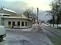 Le tramway 8 longe sa partie centrale jusqu'à son croisement de Caloniuksenkatu.