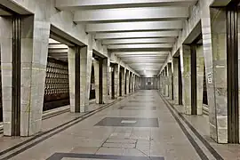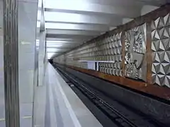 Elle est conçue et réalisée, par les ingénieurs : T.A.Zharova, O.A.Sergeev, V.Altunin, et les architectes : N.A. Aliochina, N.K. Samoïlova et, V.S. Volovitch, à partir du modèle standard de conception des stations, peu profondes, réalisées à partir d'élément préfabriqués. Elle dispose d'un quai central sur lequel sont disposés deux alignements de vingt six piliers. La finition est composée : de marbre, rouge sur les murs et gris-jaune sur les piliers, de granit gris sur le sol avec des motifs géométriques en granit noir. Des œuvres de l'artiste M.N.Alekseev sont intégrés dans la décoration, sous forme d'éléments métalliques en acier inoxydable disposés sur les piliers et d'éléments en bronze et aluminium fixés sur les murs[3].