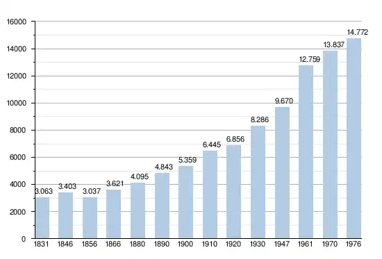 - Source : DGS - Remarque: 1831 jusqu'à 1981=recensement; depuis 1990=nombre d'habitants chaque 1er janvier[5]