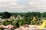 - Panoramic. Tour d'observation d'Intamin. En 1989, elle était l'une des principales attractions du Bundesgartenschau, (spectacle hortico-culturel fédéral) à Francfort en Allemagne, puis en 1992 à l'exposition agricole Floriade à Zoetermeer aux Pays-Bas, cette tour de 76 m fut en fonction de 1993 à 2008. D'un poids de 80 tonnes, la tour pouvait accueillir 50 personnes[54]. Le carrousel des animaux de la section Heidi à Plopsaland est érigé au même emplacement en 2017.