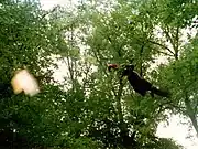 - Le gibbon qui se baladait attaché à un fil suspendu dans le parc animalier