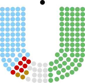 Représentation graphique des forces politiques présentes au sein du 7e Dáil à partir de .