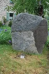 - Menhir trouvé près du moulin de Farret et ayant servi de pierre à bâtir.
