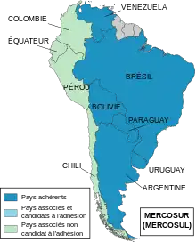 Le Marché commun du Sud, couramment abrégé Mercosur (de l'espagnol Mercado Común del Sur) ou Mercosul (du portugais Mercado Comum do Sul), est une zone de libre-échange qui regroupe plusieurs pays de l'Amérique du Sud.
