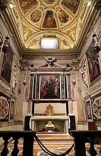 - Baldassarre Carrari le Jeune, Couronnement de la Vierge et les saints Benoît, Mercurial, Jean Gualbert et Bernard Uberti (1512)