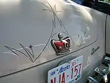 .jpg.webp) Cabriolet de 1953. La roue de secours "Continental kit" et l'extension de pare-choc proviennent d'un accessoiriste. Cabriolet de 1953. La roue de secours "Continental kit" et l'extension de pare-choc proviennent d'un accessoiriste.