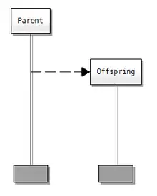 - Création d'instance: une ligne horizontale pointillée jusqu'à la nouvelle instance.