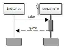 - Tête d'instance, ligne de vie, et de fin de vie: une ligne verticale avec une boite au sommet, et une boite ou une croix à sa base.