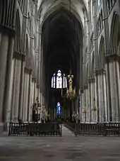 La corrélation entre la messe de Machaut et un culte marial est aussi liée à un élément de la biographie de Guillaume de Machaut qui, à la fin de sa vie avait fondé avec son frère Jean, pour 300 florins, une messe votive à la Vierge qui devait être donnée tous les samedis pour célébrer la mémoire des deux frères[12]. Il poursuivait la tradition initiée par l'archevêque de Reims Jean II de Vienne qui avait fondé en 1341 une messe grégorienne que l'on célébrait dans l'autel de la Rouelle où avait été installé en 1343 une statue de la Vierge. C'est sous cet emplacement que les deux frères furent inhumés. Selon l'historienne Anne Walters Robertson, la messe de Machaut peut avoir constitué une épitaphe à la messe fondée par Jean de Vienne sous forme de prière commémorative, célébrée les samedis face à l'autel où se trouvait la statue de la Vierge[13]. Cette célébration a perduré au XVe siècle (l'ordonnance du chapitre de Reims est de 1411) et jusqu'au XVIIIe siècle[7], avant la destruction de l'autel en 1774.