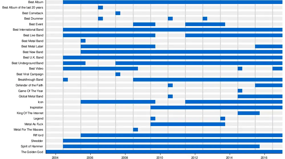 | Description | Récompense les groupes, musiciens, producteurs et personnalités liées au monde du Métal |