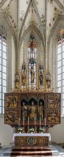 Le chœur de l'église de la paroisse St. Wolfgang ob Grades à Metniz. Réalisation des statuettes vers 1480 par un maître anonyme, probablement un atelier de Villach, reliefs et composition vers 1520.