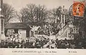 - Sur le char, on lit, en zoomant sur la photo l'inscription : « A LA REINE DES CORSES »