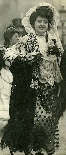 - La Mi-Carême de 1908, Paris a acclamé, hier, ses Reines et celles des anciennes provinces, Le Petit Journal, 27 mars 1908, page 1, 3e colonne. Photo de la Reine des Reines de Paris 1908 avec ses deux demoiselles d'honneur.