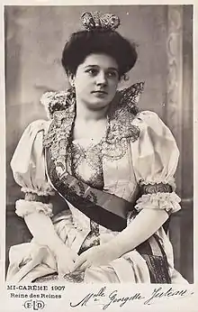 - Le nom de la Reine des Reines de Paris 1897 est indiqué dans l'article La Mi-Carême, Le Petit Parisien, 26 mars 1897, page 2, 2e colonne. Les noms de ses quatre demoiselles d'Honneur figurent dans La Mi-Carême à Paris, Le Petit Journal, 26 mars 1897, page 1, 6e colonne.