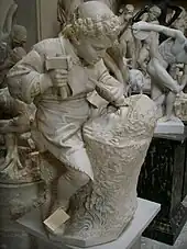 Lorsqu'en 1489, Laurent de Médicis, souverain de facto de Florence, demande à Ghirlandaio ses deux meilleurs élèves, celui-ci envoie Michel-Ange et Francesco Granacci[34],[35]. Il semble que Michel-Ange commence à fréquenter le jardin de San Marco, une sorte d'académie artistique soutenue financièrement par celui-ci, sur la suggestion d'un autre apprenti, Francesco Granacci. Une partie des vastes collections de sculptures antiques des Médicis s'y trouve, que les jeunes talents, désireux de se perfectionner dans l'art de la sculpture, peuvent copier, supervisés et aidés par le vieux sculpteur Bertoldo di Giovanni, élève de Donatello. Les biographes de l'époque décrivent le jardin comme un véritable centre d'enseignement supérieur, mettant peut-être un peu l'accent sur la réalité quotidienne, mais l'expérience a sans doute eu un impact fondamental sur le jeune Michel-Ange[29].