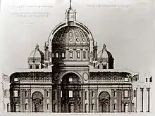 En tant qu'architecte, il conçoit le dôme de la basilique Saint-Pierre de Rome en 1508.