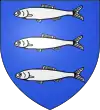 D'azur à trois goujons d'argent, l'un au-dessus de l'autre.[13]