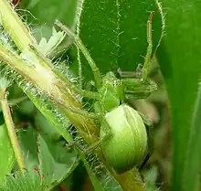 Cette espèce ne tisse pas de toile et chasse les insectes dans la végétation où son camouflage est parfait.